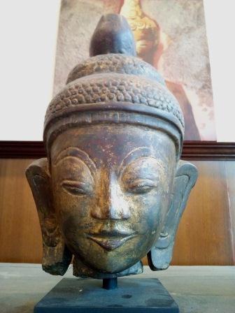 Buddha Head in Sandstone with Lacquer, Mon region Product ID: 174818 Origin: BurmaPeriod: 16thDimensions: Height: 34cm