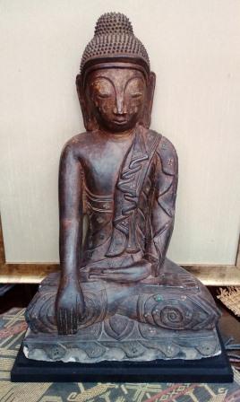 Sitting Buddha in Stone with Lacquer Traces of Gold Gilt Glass Inlay Product ID: 11660603 Origin: BurmaPeriod: 18thDimensions: Height: 52cm