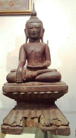 Sitting Buddha in teak Wood with Marron Lacquer, Ava
