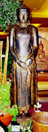 Tall Standing Buddha in Teak Wood Lacquer Amarapura